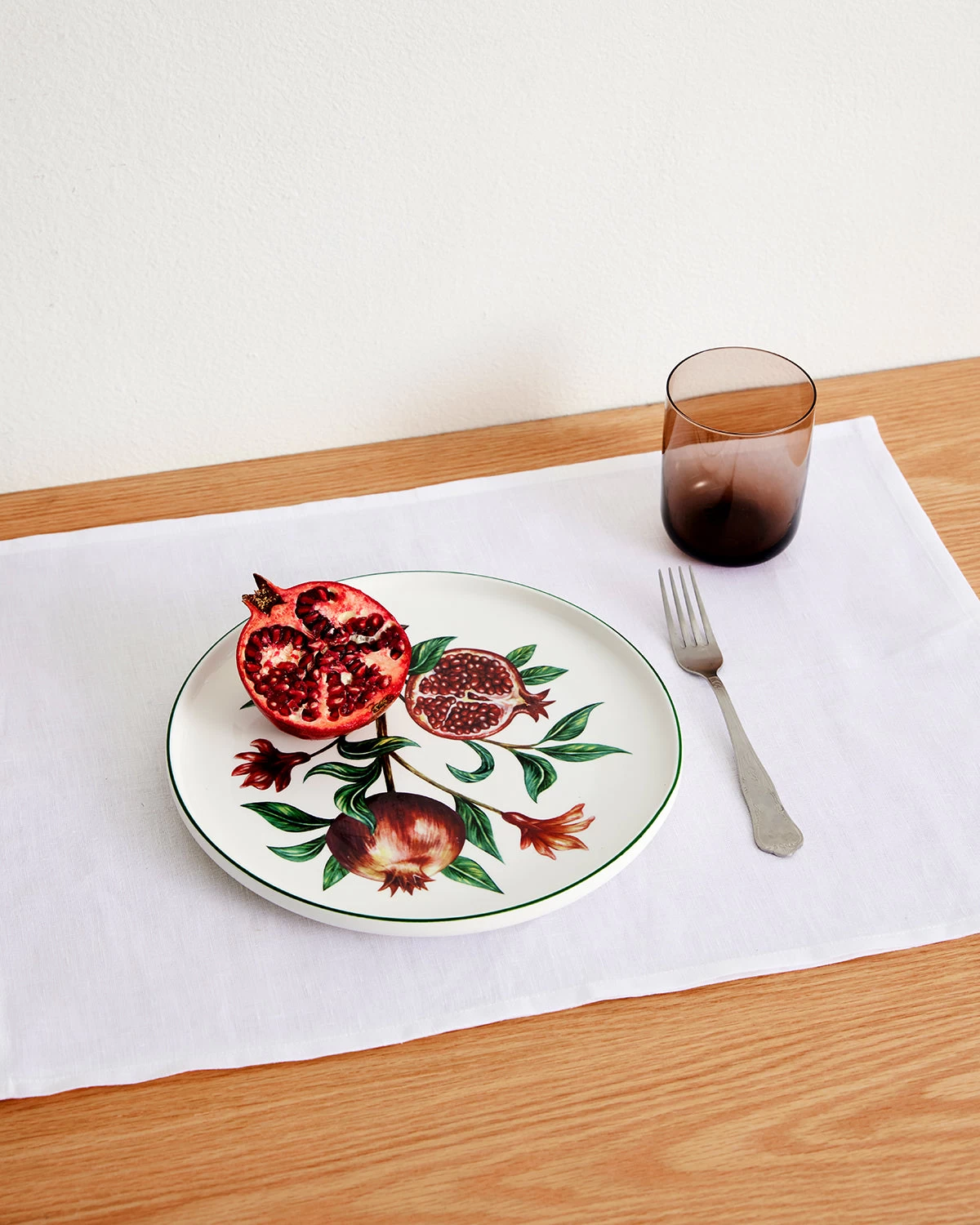 Ancient and otherwordly, the pomegranate has been a source of inspiration for centuries, whether scattered atop Middle Eastern dishes or as a subject of classical still life paintings. Here, it’s the centrepiece of a Bed Threads dinner plate, cut open to reveal jewel-like seeds.