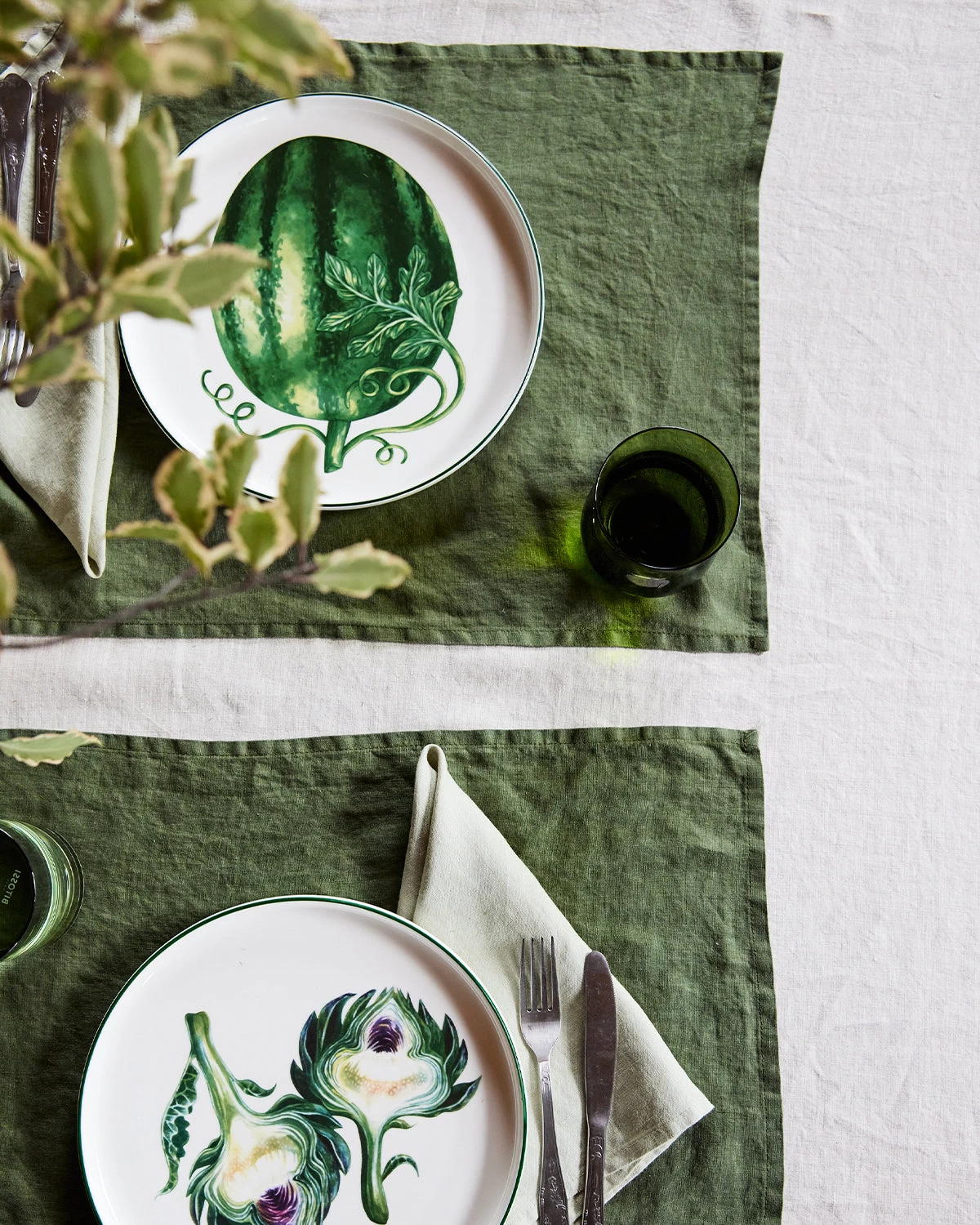 Seen growing on the vine with tendrils framing the fruit, Watermelonis a plate best served on a summer’s day. Fresh, vibrant and bursting with life, this Bed Threads dinner plate is the perfect pairing for everything from fresh cut fruit to bountiful pastas and salads.