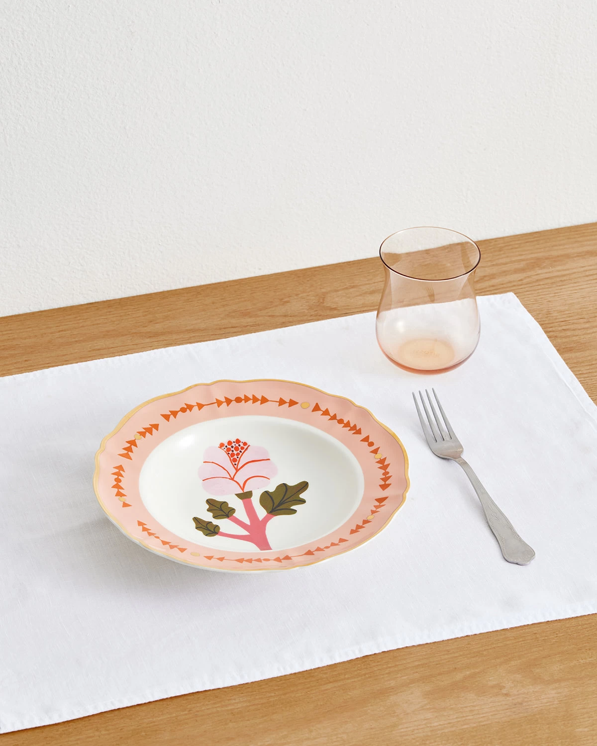 Bitossi Home brings a modern edge to classic ceramics, courtesy of bold motifs and vintage details. This striking Deep Soup Plate is one such exampleits geometric border contrasts the antique feel of its glossy gold trim, while a contemporary flower design is finished in surrealist shades of pink. With a deep centre and broad rim, this versatile plate is your everyday go-to for soups, pastas, and curries.
