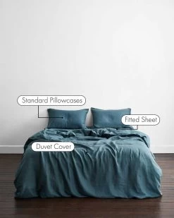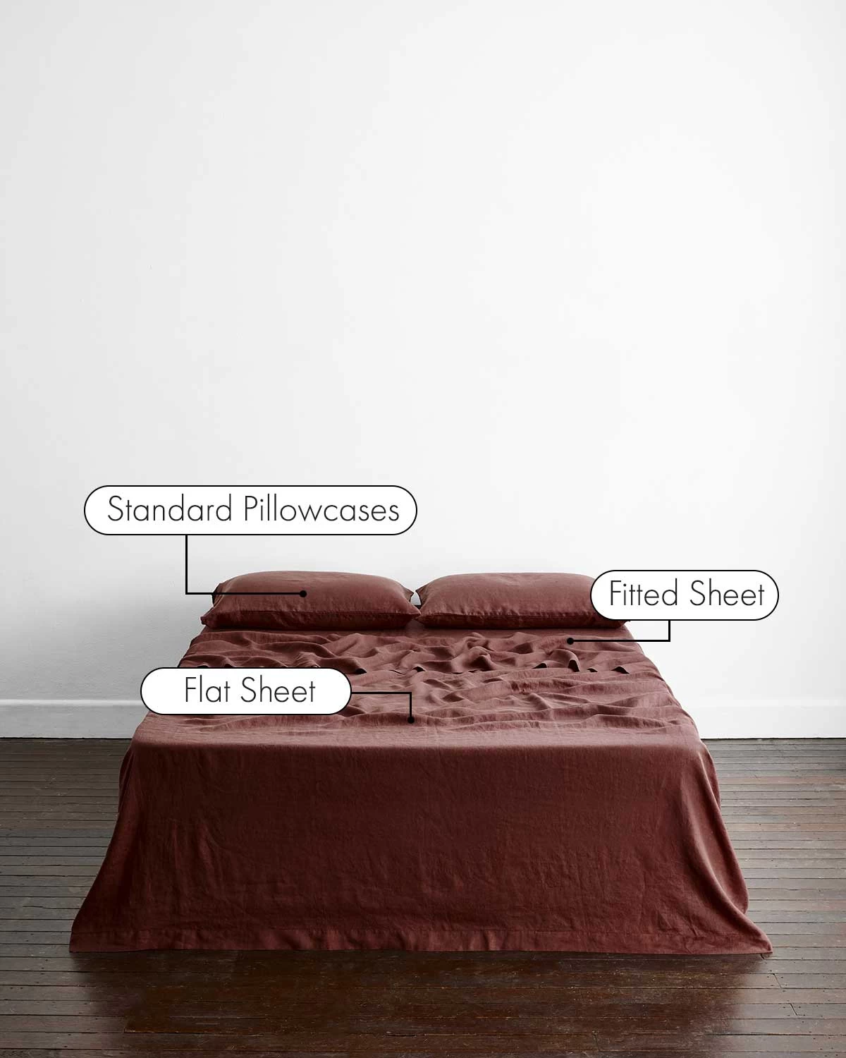 Buttery soft, pre-washed and designed to last, our 100% French flax linen sheet set inCacao includes two pillowcases, a flat sheet and a fitted sheet. Perfect for those who prefer to sleep without a duvet cover, or simply love a layered linen-clad bed.
