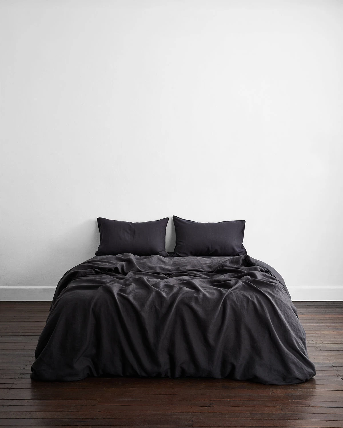 Natural, breathable and buttery soft, our 100% French flax linen pillowcases in Charcoal are pure everyday luxury. This set of two standard size pillowcases features an envelope opening to snugly secure your insert, so you can enjoy plump and protected pillows every time your head hits the them.