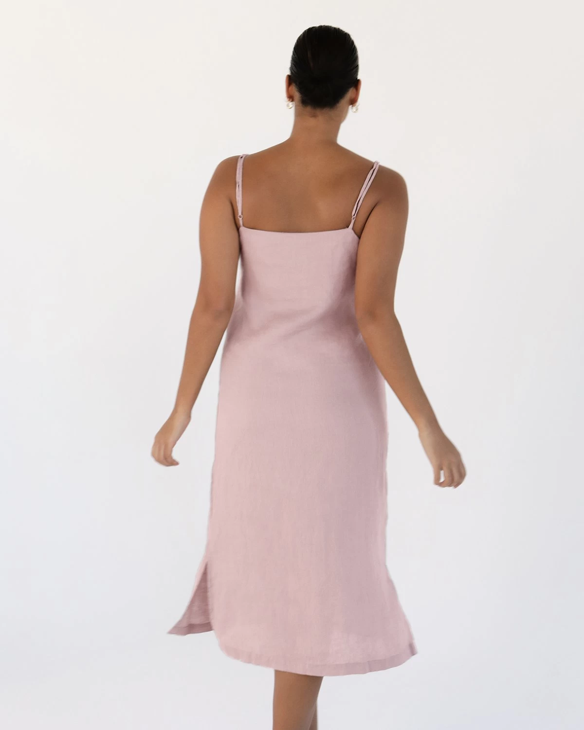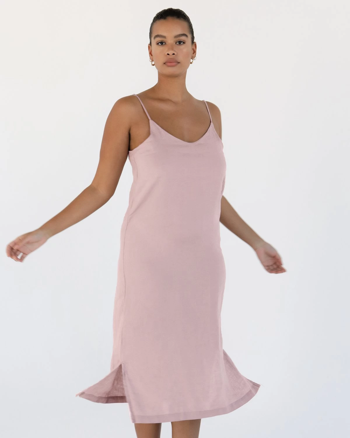 For occasions when only the most laidback style will do, our 100% French Flax Linen Midi Dress is the perfect fit. A longer, looser, oversized slip dress, it features a calf-grazing hemline and two small splits on either side for ease of movement. With a low back, v-neckline and adjustable shoulder straps, the Midi Dress is fashioned from breathable, temperature-regulating flax linen to keep you cool and cosy in bed all night long. In fact, its so easygoing and comfortable, we wont blame you if you want to wear it out of the house, too.