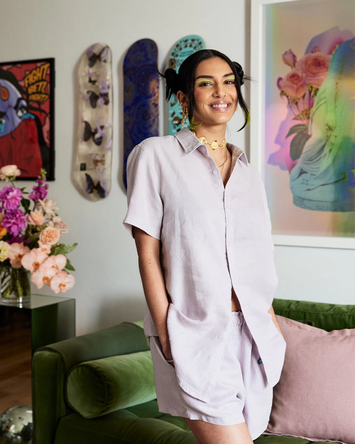Our 100% French flax linen Lilac Short Sleepwear Set will be your new wear-on-repeat wardrobe staple. This all-in-one set features a relaxed fit to keep you feeling cool under the covers, and looking cool out of them. With a moisture-wicking fabrication and coordinated color, our Short Sleepwear Set comes complete with a button-down Short Sleeve Shirt and matching pair of Shorts finished with an elasticated waist.