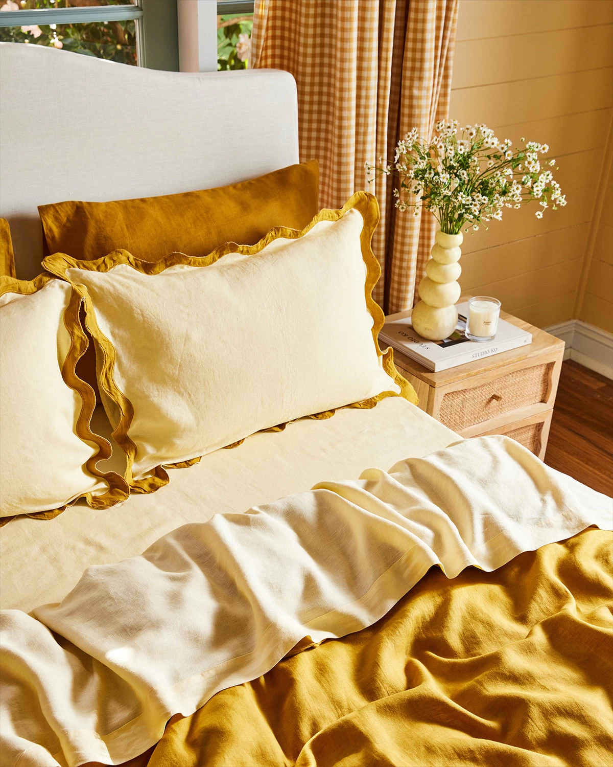 For a bed you can’t resist jumping into, just add our Scalloped Standard Pillowcases. A fresh and space-uplifting update to our classic pillowcases, these 100% French flax linen pillowcases combine Jean Royre-inspired curves with a punchy contrasting color trim. Match them with our Scalloped European Pillowcases for a bed complete with all the trimmings, or style them on their own for instant impact. There’s no faster way to take your space from bare to flair.