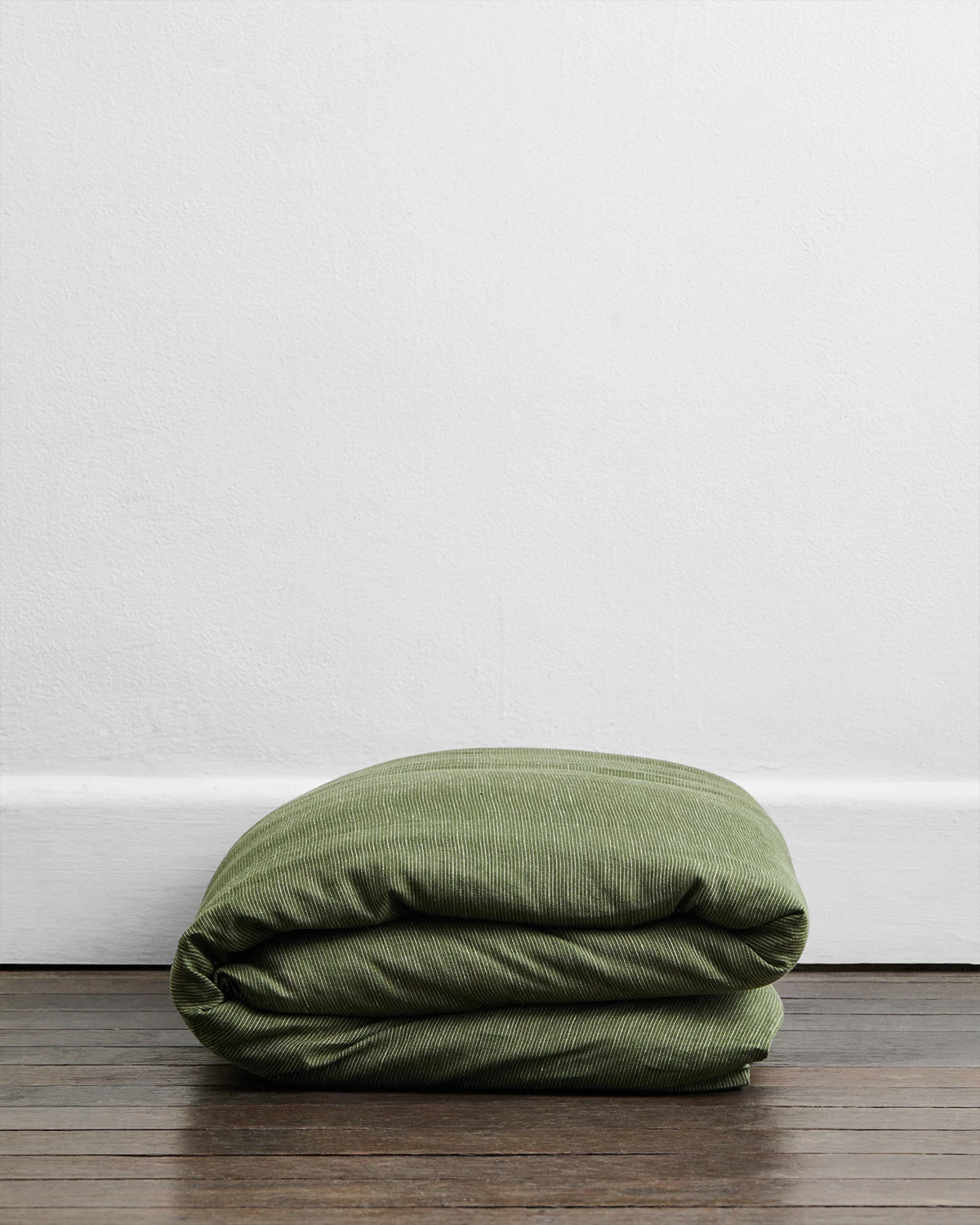 Make your bed look as good as it feels with our 100% French flax linen duvet cover in Olive Stripe. Complete with button closures to keep your insert nice and snug, this duvet cover is as easy to care for as it is to sleep in.