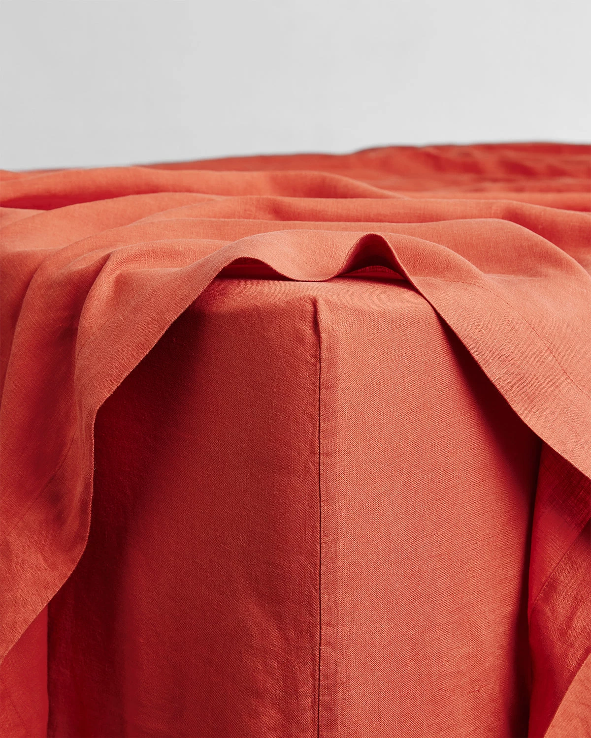 Ultra soft and incredibly durable, our 100% French flax linen fitted sheet inPaprika is the foundation for a beautifully made bed. With a generous fit that snugly hugs every corner, this modern heirloom is made to keep.