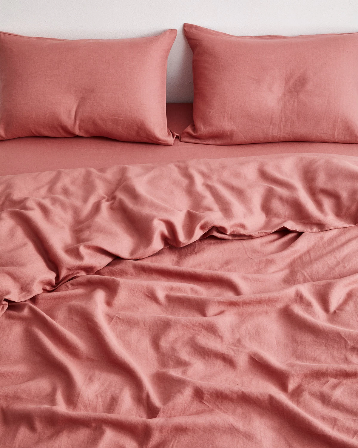 Make your bed look as good as it feels with our 100% French flax linen duvet cover in Pink Clay. Complete with button closures to keep your insert nice and snug, this duvet cover is as easy to care for as it is to sleep in.