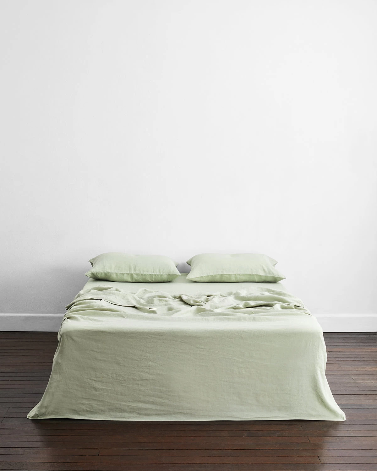 Ultra soft and incredibly durable, our 100% French flax linen flat sheet in Sage is a versatile addition to your collection. Generously sized to just graze the floor, these sheets serve as lightweight covers on their own, or as a luxurious extra layer alongside other linen pieces.