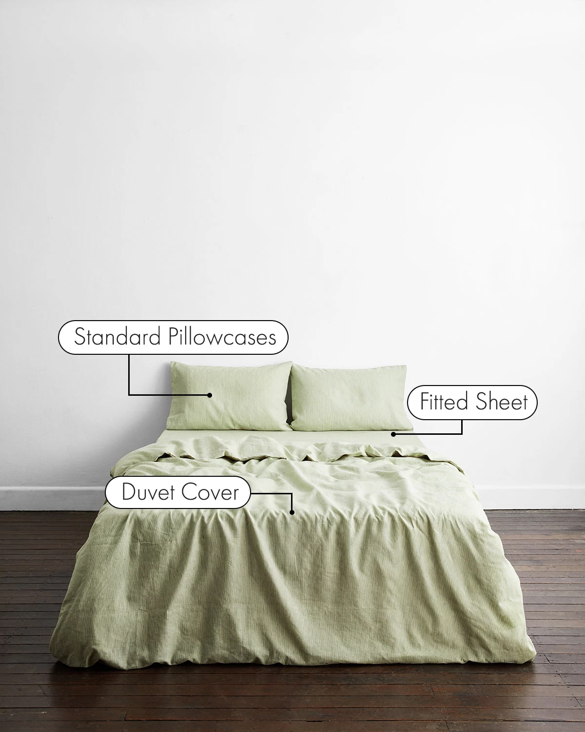 Buttery soft, pre-washed, and designed to last, our pure 100% French Flax Linen Bedding Set in Sage & Olive Stripe makes the whole bed feel like the cool side of the pillow with two pillowcases, a duvet cover, and a fitted sheet. A fresh take on our favorite green hues, Sage & Olive Stripe combines a soothing Sage base with a thin, vertical Olive stripe. This go-with-anything green is made all the more special by the fine stripe detail that reveals itself only to those who get up close (or under the covers).