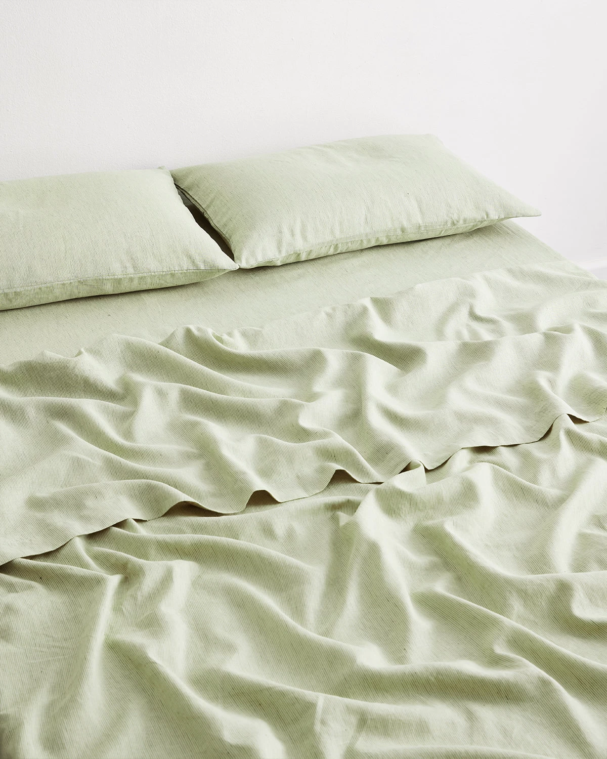 Ultra soft and incredibly durable, our 100% French flax linen fitted sheet in Sage & Olive Stripe is the foundation for a beautifully made bed. With a generous fit that snugly hugs every corner, this modern heirloom is made to keep.