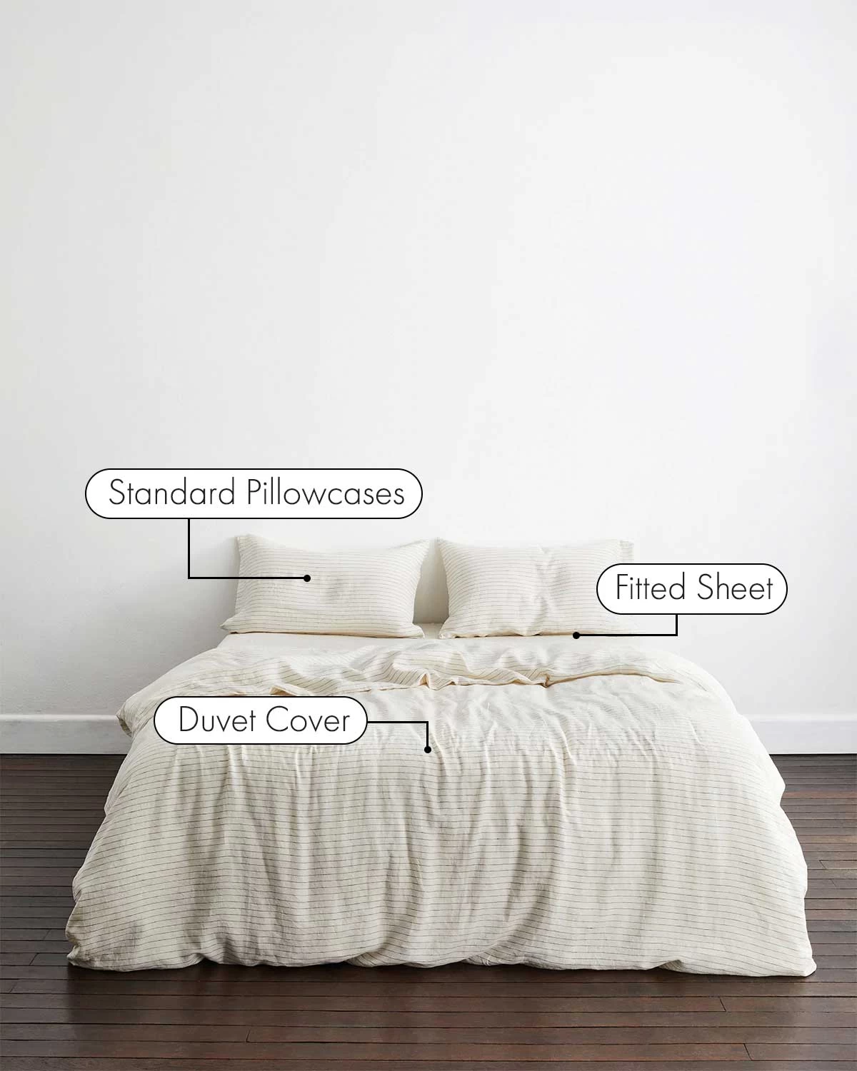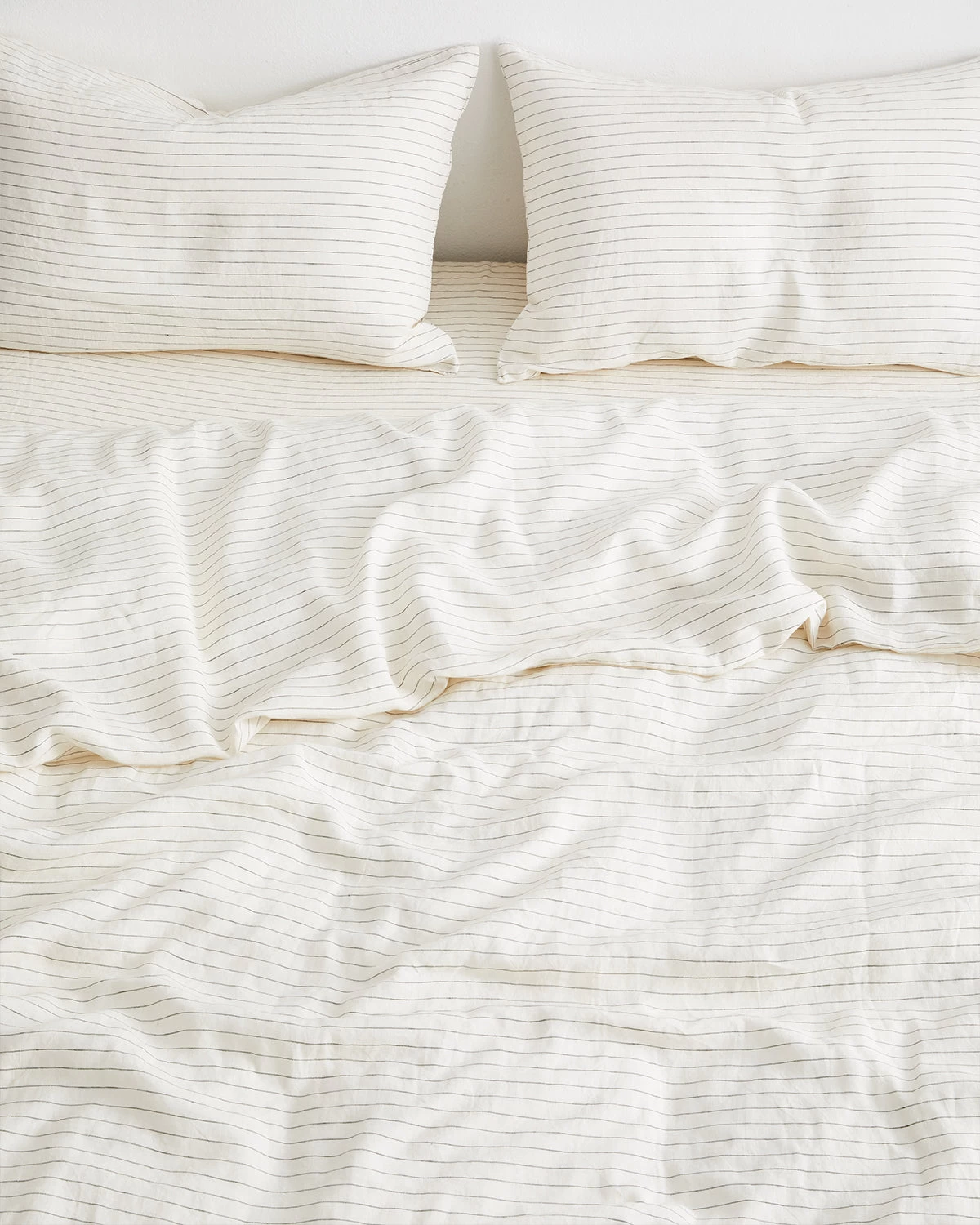 Buttery soft, pre-washed, and designed to last, our pure 100% French Flax Linen Bedding Set in Stripe makes the whole bed feel like the cool side of the pillow with two pillowcases, a duvet cover, and a fitted sheet. Featuring a slim, dark horizontal line, widely spaced against a creamy background, Stripe is a chic, monochromatic option for lovers of simplicity. This off-white hue is slightly lighter than Oatmeal but warmer than Pinstripe.