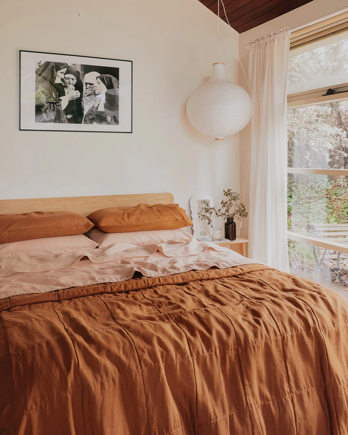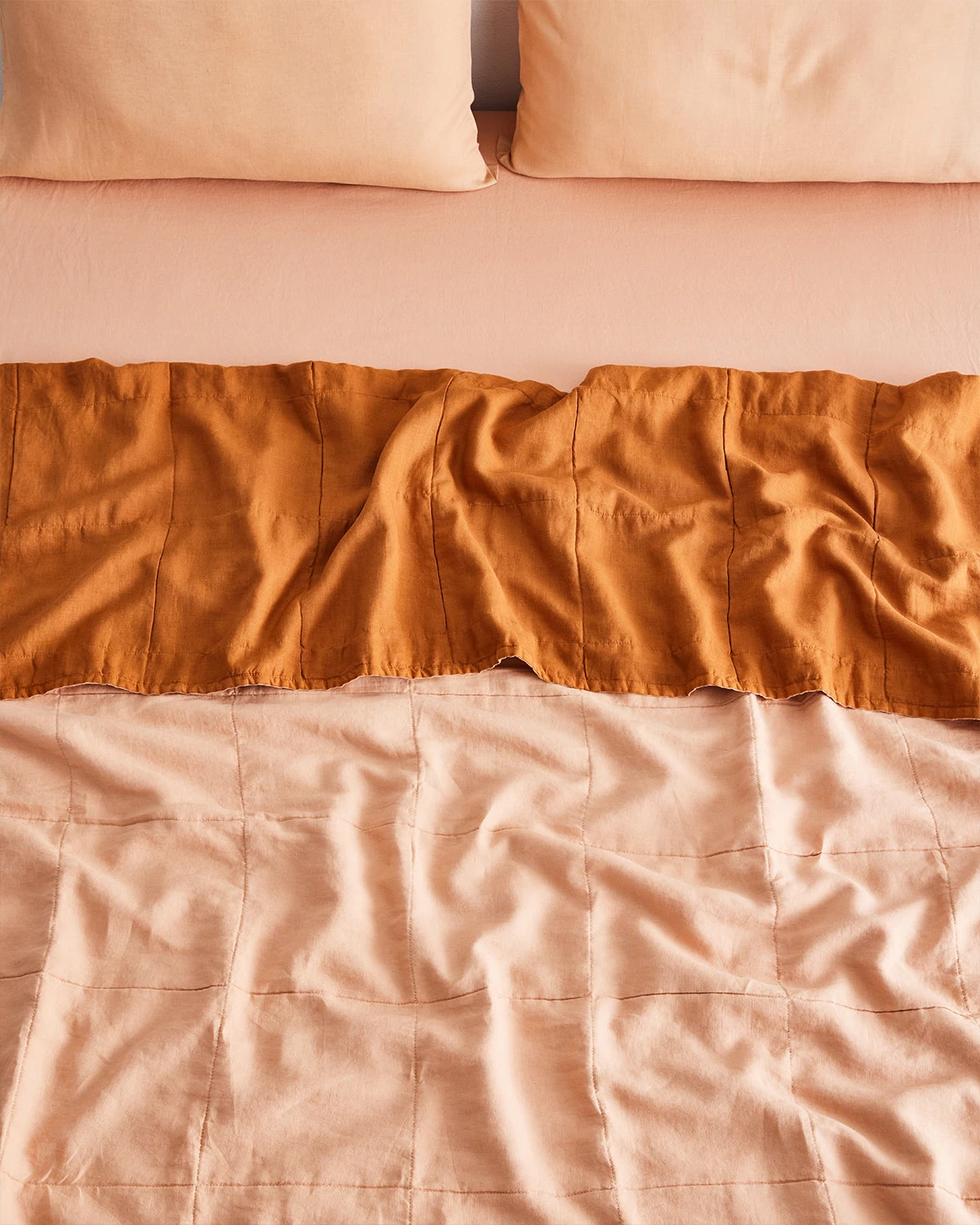 Incredibly light yet remarkably warm, our naturally insulating Quilts are the ultimate layering essential for every season. Featuring an ultra-soft linen shell and breathable bamboo fill, these versatile pieces are the best of both worlds both a lightweight duvet substitute in summer and cosy extra layer in winter, while being just about the easiest way to make your bed feel brand new. Opt for our reversible two-tone styles for maximum styling options, or create a lavishly-layered bed with classic solid colorways. There’s never been a more stylish way to keep your toes toasty (or your bedroom looking fresh).