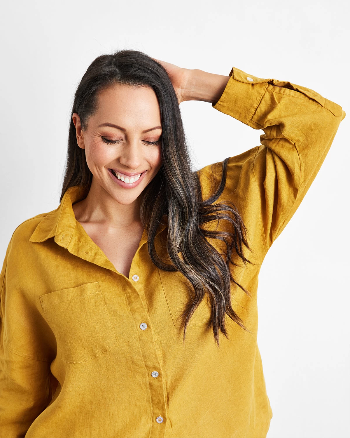 With a classic design and relaxed fit, our 100% French flax Linen Long Sleeve Shirt is a piece for your forever wardrobe. Featuring a button-down front, double pockets at the breast, and a button closure at the wrist, its a timeless style that will get you through season after season in ultimate comfort. Versatile and simple, this shirt can just as easily be seen at the beach or in the office, as it can beneath the sheets.