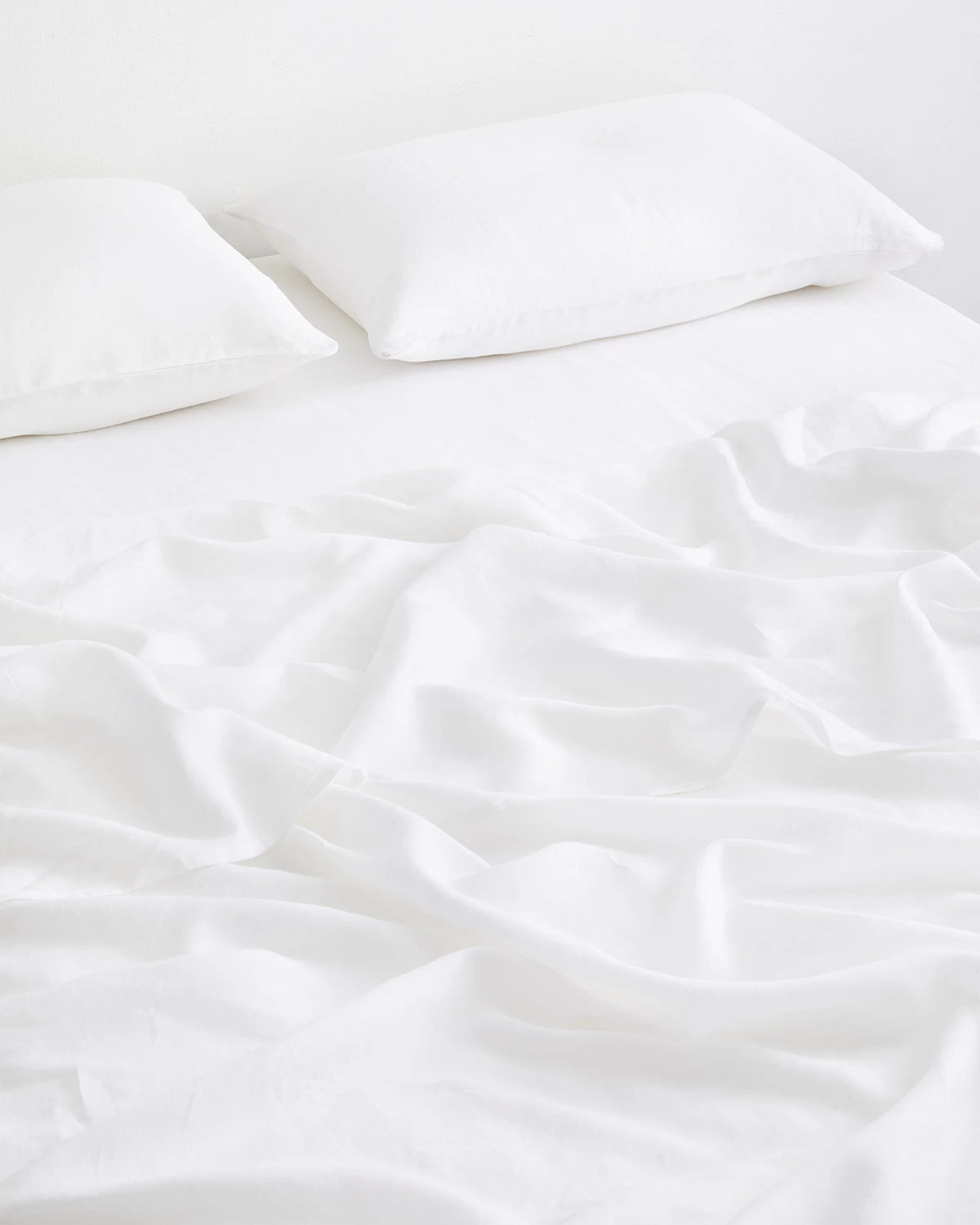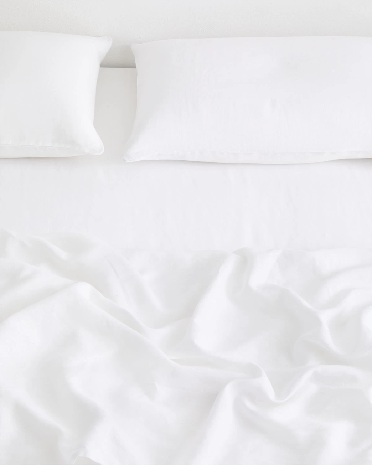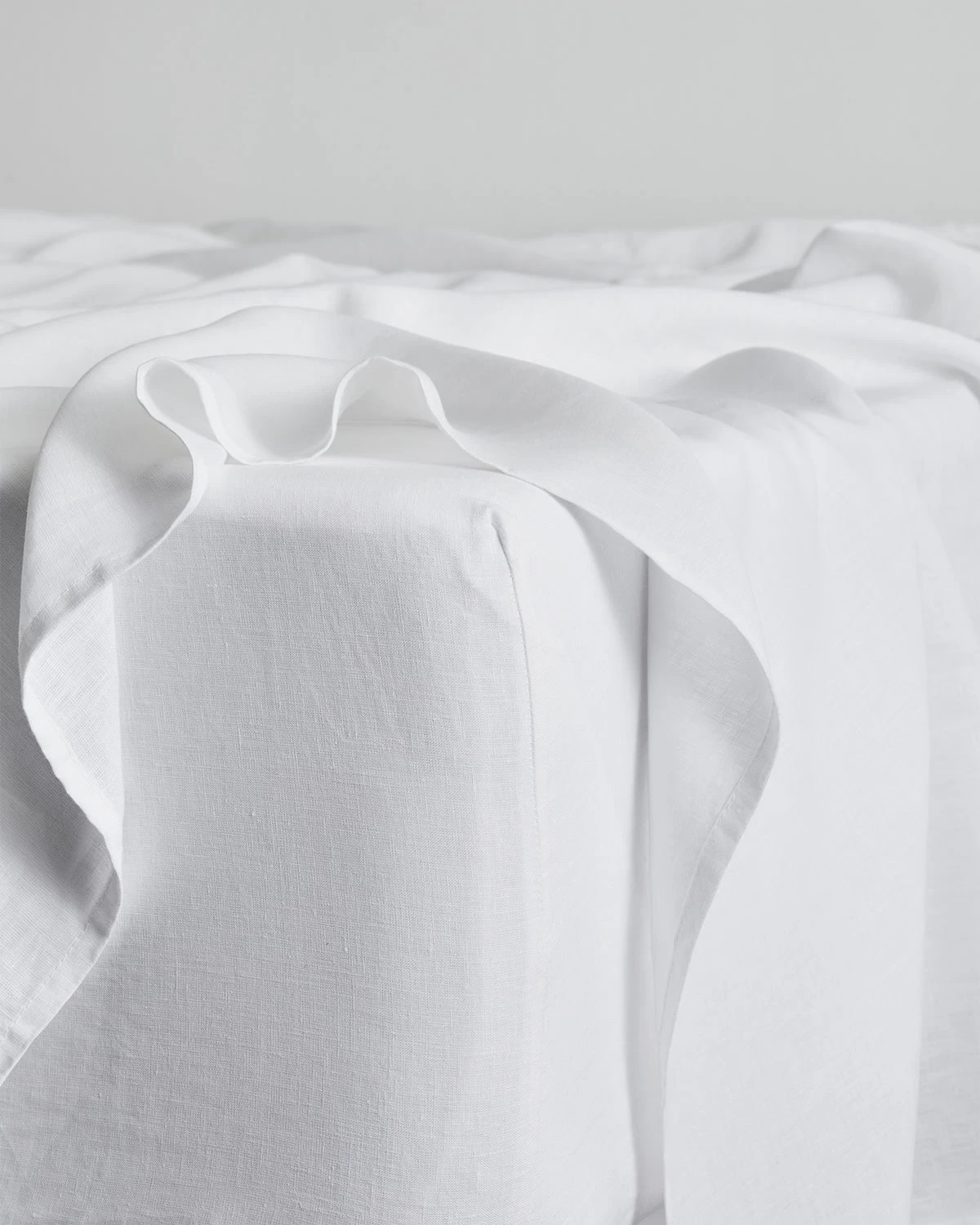 Ultra soft and incredibly durable, our 100% French flax linen fitted sheet in White is the foundation for a beautifully made bed. With a generous fit that snugly hugs every corner, this modern heirloom is made to keep.